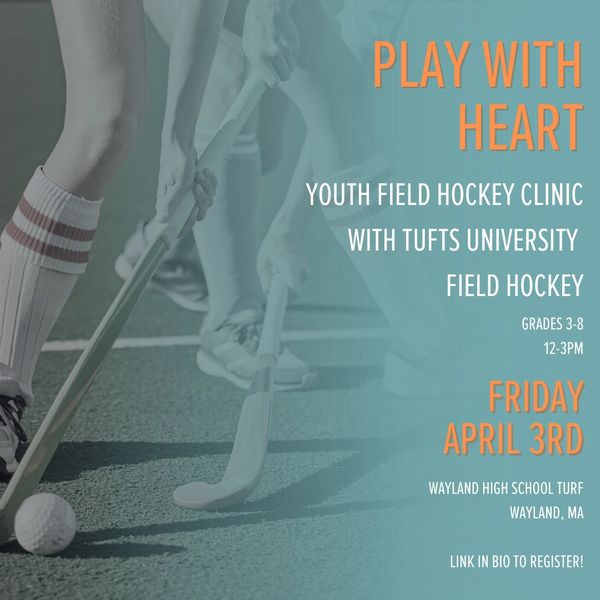 Please join us for our second annual Play with Heart Field Hockey Clinic led by Tina Mattera, head coach of Tufts University Field Hockey. Tina and her staff were named NFHCA Coaching Staff of the Year in 2024 and 2025, and Tufts took home the DIII NCAA National Championship last fall. This training opportunity is not to be missed!